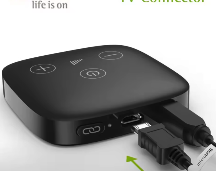 Tv Connector è un piccolo dispositivo che collega il televisore (o altre sorgenti audio) agli apparecchi acustici in modalità wireless. In pratica trasforma gli apparecchi acustici compatibili in vere e proprie cuffie stereo, con il suono che arriva direttamente alle orecchie, senza ritardi e senza bisogno di alzare il volume della TV.